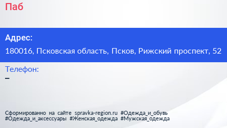 Паб по адресу 180016, Псковская область, Псков, Рижский проспект, 52 в дальнейшем Организация, размещена в следующих категориях: