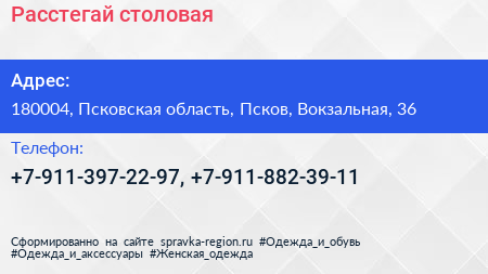 Расстегай, столовая по адресу 180004, Псковская область, Псков, Вокзальная, 36 в дальнейшем Организация, размещена в следующих категориях: