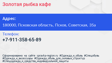 Золотая рыбка, кафе по адресу 180000, Псковская область, Псков, Советская, 35а в дальнейшем Организация, размещена в следующих категориях: