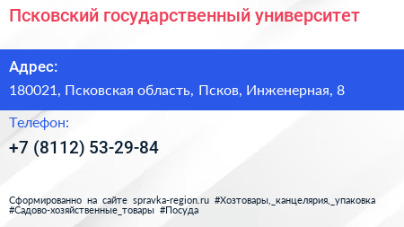 Псковский государственный университет по адресу 180021, Псковская область, Псков, Инженерная, 8 в дальнейшем Организация, размещена в следующих категориях: