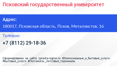 Псковский государственный университет по адресу 180017, Псковская область, Псков, Металлистов, 16 в дальнейшем Организация, размещена в следующих категориях: