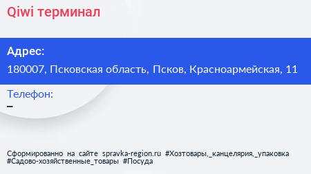 Qiwi, терминал по адресу 180007, Псковская область, Псков, Красноармейская, 11 в дальнейшем Организация, размещена в следующих категориях: