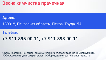 Весна, химчистка-прачечная по адресу 180019, Псковская область, Псков, Труда, 54 в дальнейшем Организация, размещена в следующих категориях: