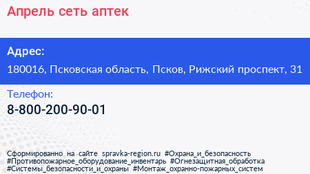 Апрель, сеть аптек по адресу 180016, Псковская область, Псков, Рижский проспект, 31 в дальнейшем Организация, размещена в следующих категориях: