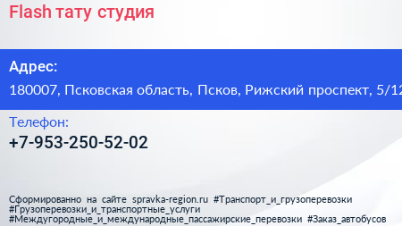 Flash, тату-студия по адресу 180007, Псковская область, Псков, Рижский проспект, 5/12 в дальнейшем Организация, размещена в следующих категориях: