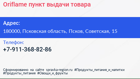 Oriflame, пункт выдачи товара по адресу 180000, Псковская область, Псков, Советская, 15 в дальнейшем Организация, размещена в следующих категориях:
