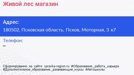 Живой лес, магазин по адресу 180502, Псковская область, Псков, Моторная, 3 к7 в дальнейшем Организация, размещена в следующих категориях: