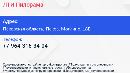 ЛТИ Пилорама по адресу Псковская область, Псков, Моглино, 18Б в дальнейшем Организация, размещена в следующих категориях: