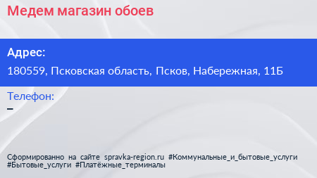 Медем, магазин обоев по адресу 180559, Псковская область, Псков, Набережная, 11Б в дальнейшем Организация, размещена в следующих категориях: