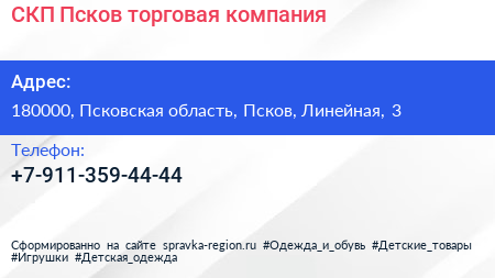 СКП-Псков, торговая компания по адресу 180000, Псковская область, Псков, Линейная, 3 в дальнейшем Организация, размещена в следующих категориях: