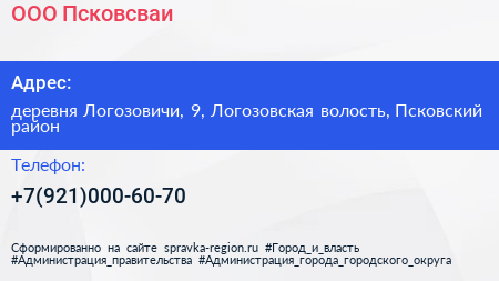 ООО Псковсваи по адресу деревня Логозовичи, 9, Логозовская волость, Псковский район в дальнейшем Организация, размещена в следующих категориях: