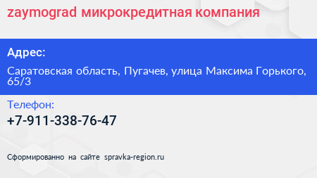 zaymograd, микрокредитная компания по адресу Саратовская область, Пугачев, улица Максима Горького, 65/3 в дальнейшем Организация, размещена в следующих категориях: