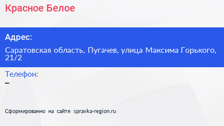 Красное & Белое по адресу Саратовская область, Пугачев, улица Максима Горького, 21/2 в дальнейшем Организация, размещена в следующих категориях: