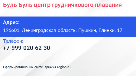 Буль-Буль, центр грудничкового плавания по адресу 196601, Ленинградская область, Пушкин, Глинки, 17 в дальнейшем Организация, размещена в следующих категориях: