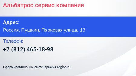 Альбатрос-сервис, компания по адресу 13, Парковая улица, Грачёвка, Павловск, Фёдоровское городское поселение, Тосненский район, Ленинградская область, Северо-Западный федеральный округ, 196621, Россия в дальнейшем Организация, размещена в следующих категориях: