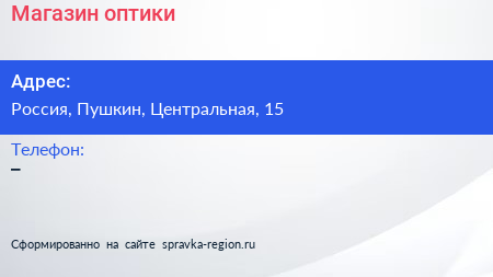 Магазин оптики по адресу Пятёрочка, 15, Центральная улица, Фёдоровское, Фёдоровское городское поселение, Тосненский район, Ленинградская область, Северо-Западный федеральный округ, 187021, Россия в дальнейшем Организация, размещена в следующих категориях: