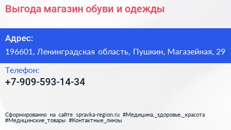 Выгода, магазин обуви и одежды по адресу 196601, Ленинградская область, Пушкин, Магазейная, 29 в дальнейшем Организация, размещена в следующих категориях: