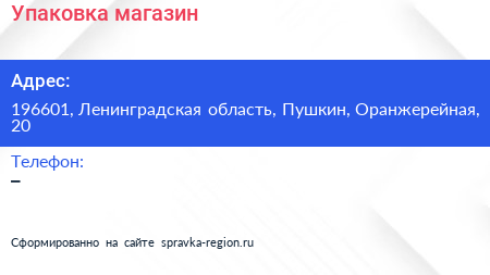 Упаковка, магазин по адресу 196601, Ленинградская область, Пушкин, Оранжерейная, 20 в дальнейшем Организация, размещена в следующих категориях: