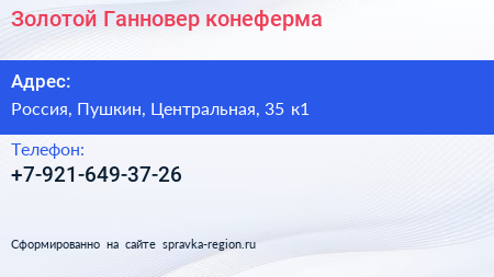 Золотой Ганновер, конеферма по адресу 35, Центральная улица, Аннолово, Фёдоровское городское поселение, Тосненский район, Ленинградская область, Северо-Западный федеральный округ, 187021, Россия в дальнейшем Организация, размещена в следующих категориях: