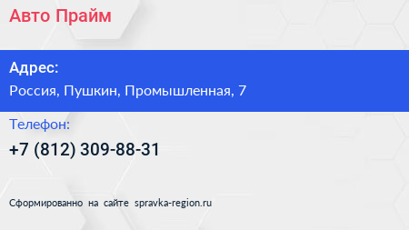 Авто-Прайм по адресу ZOO-Garden, 7, Промышленная улица, Фёдоровское, Фёдоровское городское поселение, Тосненский район, Ленинградская область, Северо-Западный федеральный округ, 187046, Россия в дальнейшем Организация, размещена в следующих категориях: