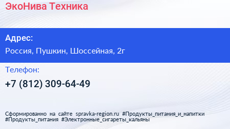 ЭкоНива-Техника по адресу Автомойка 24, Шоссейная улица, Фёдоровское, Фёдоровское городское поселение, Тосненский район, Ленинградская область, Северо-Западный федеральный округ, 187021, Россия в дальнейшем Организация, размещена в следующих категориях: