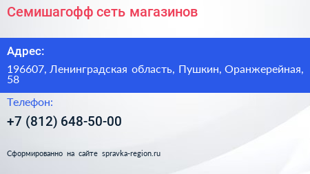 Семишагофф, сеть магазинов по адресу 196607, Ленинградская область, Пушкин, Оранжерейная, 58 в дальнейшем Организация, размещена в следующих категориях: