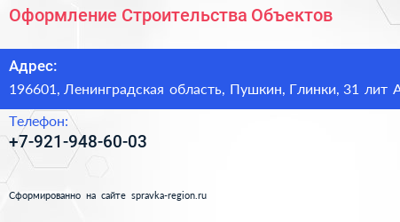 Оформление Строительства Объектов по адресу 196601, Ленинградская область, Пушкин, Глинки, 31 лит А в дальнейшем Организация, размещена в следующих категориях: