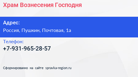 Храм Вознесения Господня по адресу Федоровская средняя общеобразовательная школа, Почтовая улица, Фёдоровское, Фёдоровское городское поселение, Тосненский район, Ленинградская область, Северо-Западный федеральный округ, 187021, Россия в дальнейшем Организация, размещена в следующих категориях:
