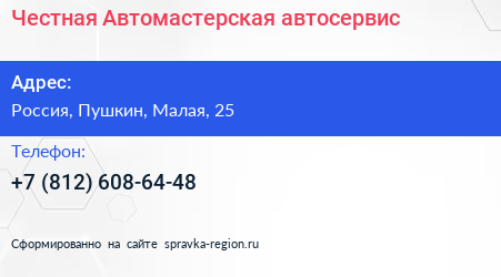 Честная Автомастерская, автосервис по адресу 25А, Почтовая улица, Фёдоровское, Фёдоровское городское поселение, Тосненский район, Ленинградская область, Северо-Западный федеральный округ, 187021, Россия в дальнейшем Организация, размещена в следующих категориях: