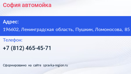 София, автомойка по адресу 196602, Ленинградская область, Пушкин, Ломоносова, 85 в дальнейшем Организация, размещена в следующих категориях: