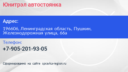 Юнитрэл, автостоянка по адресу 196606, Ленинградская область, Пушкин, Железнодорожная улица, 66а в дальнейшем Организация, размещена в следующих категориях: