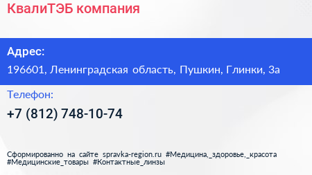 КвалиТЭБ, компания по адресу 196601, Ленинградская область, Пушкин, Глинки, 3а в дальнейшем Организация, размещена в следующих категориях:
