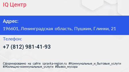 IQ Центр по адресу 196601, Ленинградская область, Пушкин, Глинки, 21 в дальнейшем Организация, размещена в следующих категориях: