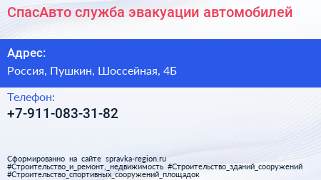 СпасАвто, служба эвакуации автомобилей по адресу Учкудук, 6, Шоссейная улица, Фёдоровское, Фёдоровское городское поселение, Тосненский район, Ленинградская область, Северо-Западный федеральный округ, 187021, Россия в дальнейшем Организация, размещена в следующих категориях: