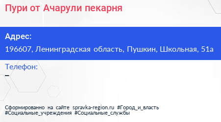 Пури от Ачарули, пекарня по адресу 196607, Ленинградская область, Пушкин, Школьная, 51а в дальнейшем Организация, размещена в следующих категориях: