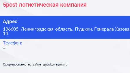 5post, логистическая компания по адресу 196605, Ленинградская область, Пушкин, Генерала Хазова, 14 в дальнейшем Организация, размещена в следующих категориях: