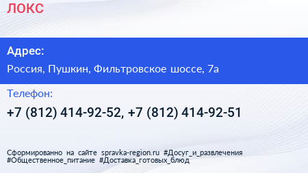 Для связи с организацией воспользуйтесь номером телефона: +7 (812) 414-92-52, +7 (812) 414-92-51. Пн: c 09:00-13:00, Вт: c 09:00-13:00, Ср: c 09:00-13:00, Чт: c 09:00-13:00, Пт: c 09:00-13:00, Сб: выходной, Вс: выходной, вы можете обратиться в эту организацию.