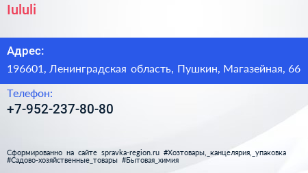 Iululi по адресу 196601, Ленинградская область, Пушкин, Магазейная, 66 в дальнейшем Организация, размещена в следующих категориях: