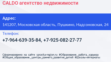 CALDO, агентство недвижимости по адресу 141207, Московская область, Пушкино, Надсоновская, 24 в дальнейшем Организация, размещена в следующих категориях: