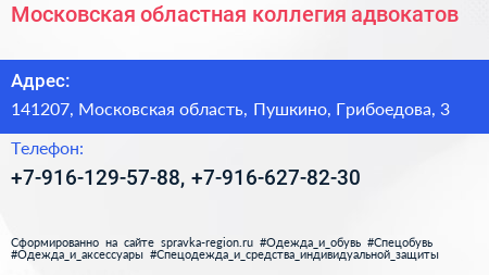 Московская областная коллегия адвокатов по адресу 141207, Московская область, Пушкино, Грибоедова, 3 в дальнейшем Организация, размещена в следующих категориях:
