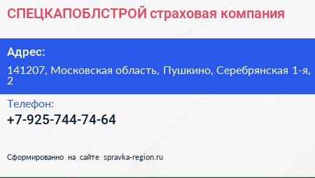СПЕЦКАПОБЛСТРОЙ, страховая компания по адресу 141207, Московская область, Пушкино, Серебрянская 1-я, 2 в дальнейшем Организация, размещена в следующих категориях: