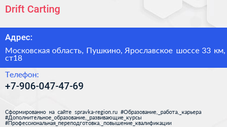 Drift Carting по адресу Московская область, Пушкино, Ярославское шоссе 33 км, ст18 в дальнейшем Организация, размещена в следующих категориях: