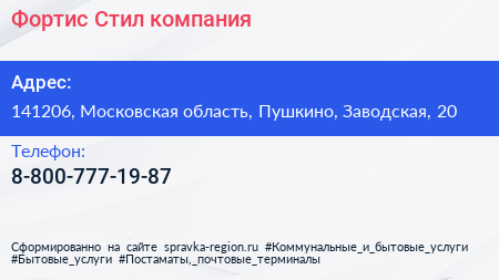 Фортис Стил, компания по адресу 141206, Московская область, Пушкино, Заводская, 20 в дальнейшем Организация, размещена в следующих категориях: