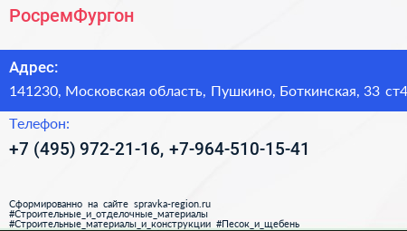 РосремФургон по адресу 141230, Московская область, Пушкино, Боткинская, 33 ст4 в дальнейшем Организация, размещена в следующих категориях: