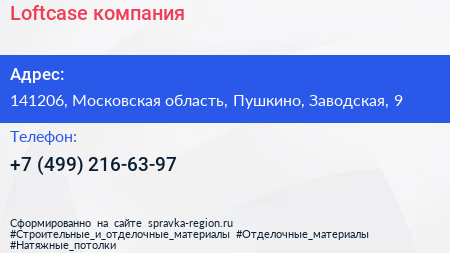 Loftcase, компания по адресу 141206, Московская область, Пушкино, Заводская, 9 в дальнейшем Организация, размещена в следующих категориях: