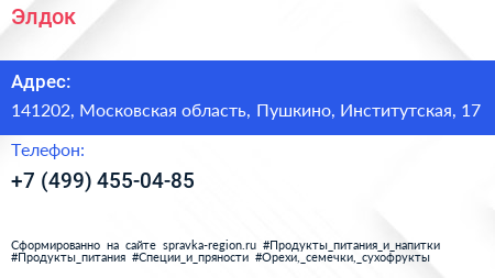 Элдок по адресу 141202, Московская область, Пушкино, Институтская, 17 в дальнейшем Организация, размещена в следующих категориях: