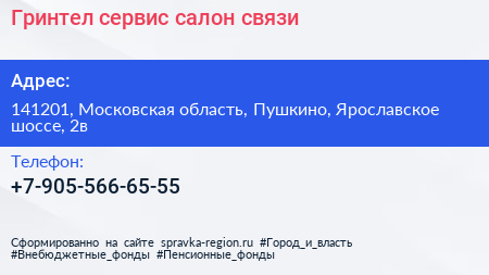 Гринтел-сервис, салон связи по адресу 141201, Московская область, Пушкино, Ярославское шоссе, 2в в дальнейшем Организация, размещена в следующих категориях: