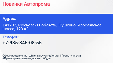 Новинки Автопрома по адресу 141202, Московская область, Пушкино, Ярославское шоссе, 190 к2 в дальнейшем Организация, размещена в следующих категориях:
