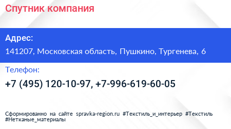 Спутник, компания по адресу 141207, Московская область, Пушкино, Тургенева, 6 в дальнейшем Организация, размещена в следующих категориях: