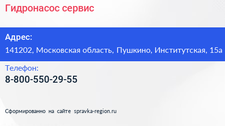 Гидронасос-сервис по адресу 141202, Московская область, Пушкино, Институтская, 15а в дальнейшем Организация, размещена в следующих категориях: